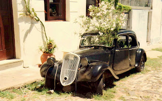 Auto-maceta en Colonia del Sacramento, Uruguay